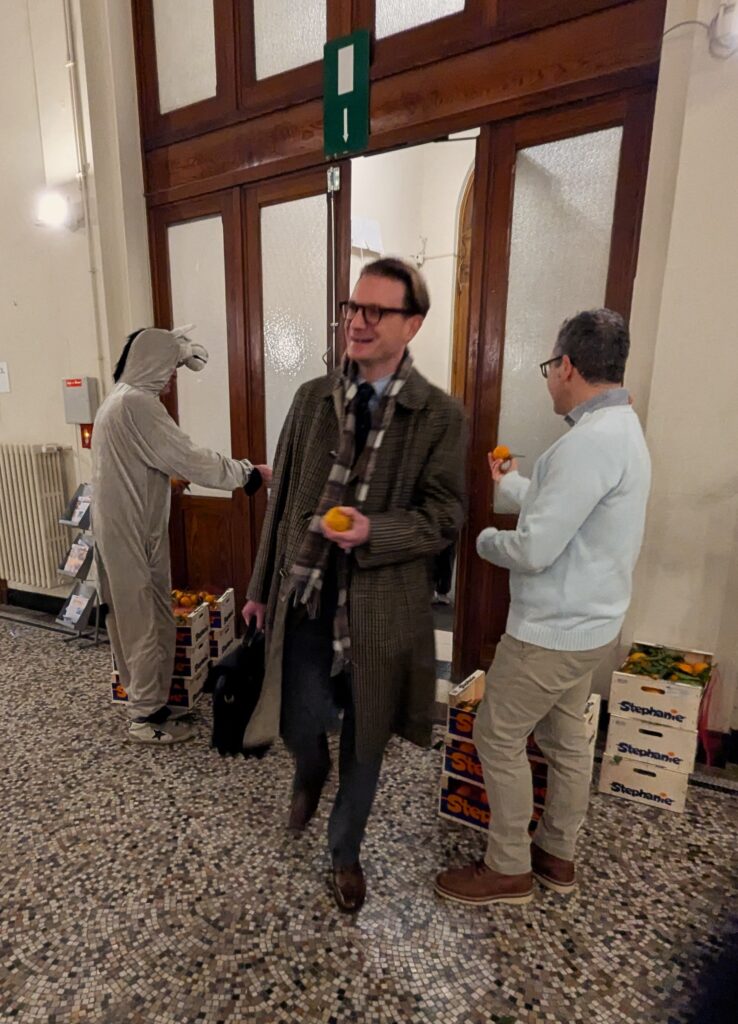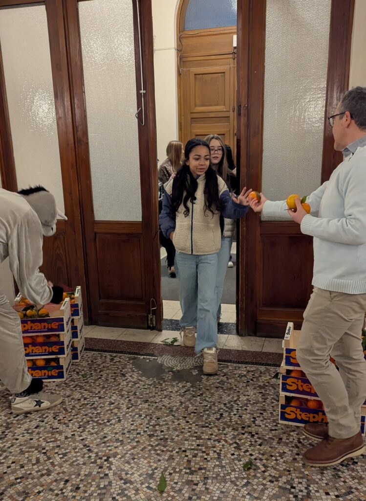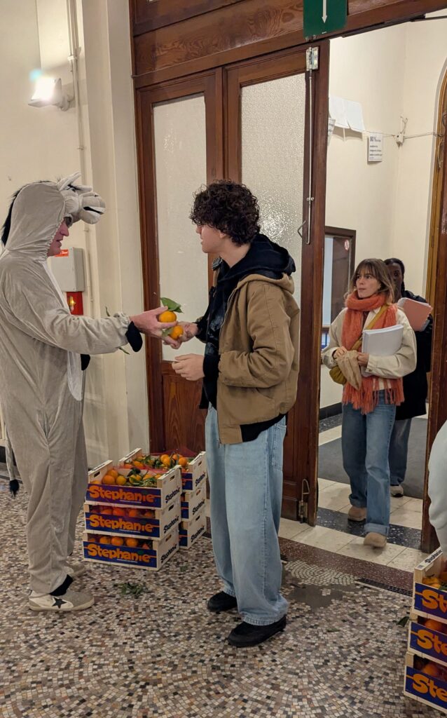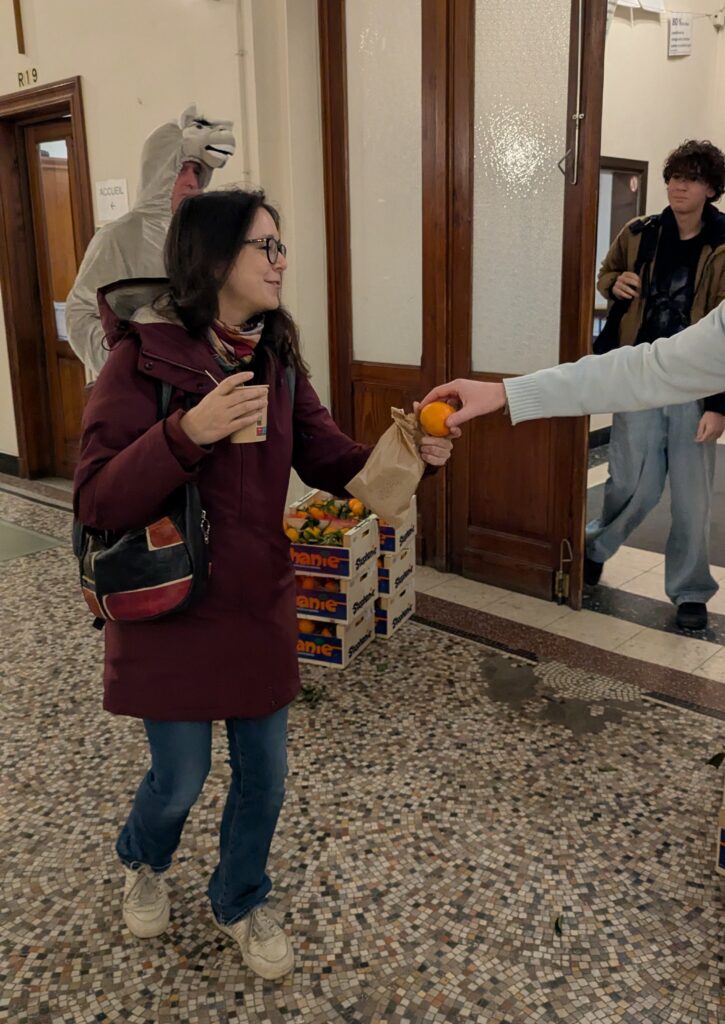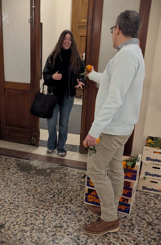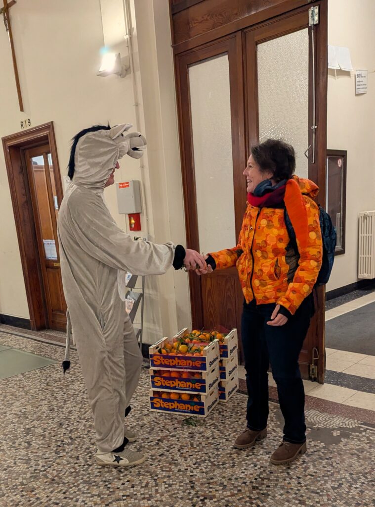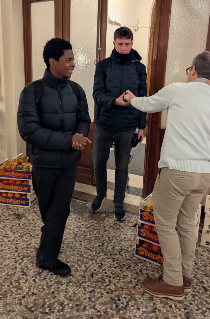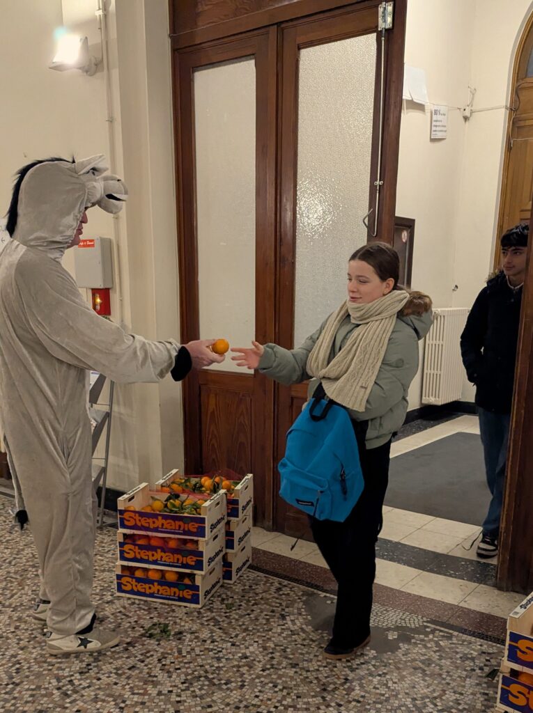 Il avait également amené des cageots de mandarines qui ont été distribuées à chaque élève, mais aussi à chaque membre du corps enseignant et au personnel de l’école.